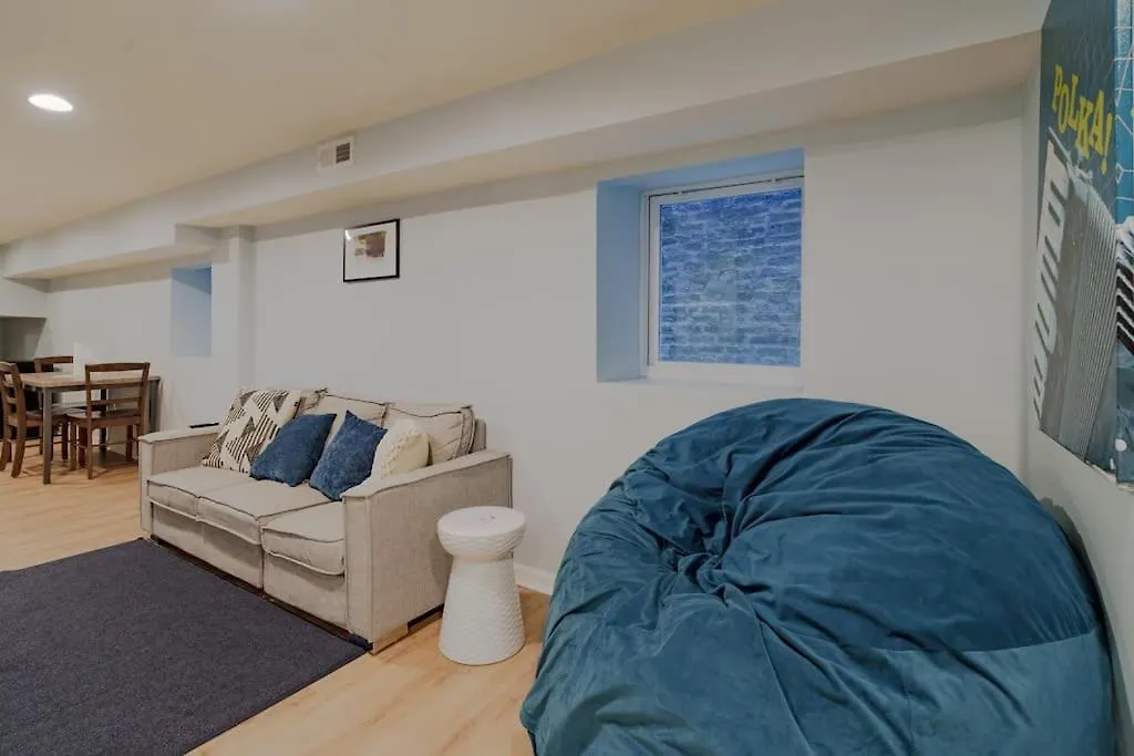Among the in-room comforts are climate control, along with a television. Prime Location In Lakeview Near Wrigleyville is also furnished with a sofa set and a work desk. A bathroom has a separate toilet, a bath, and a shower, as well as hairdryers and bath sheets.